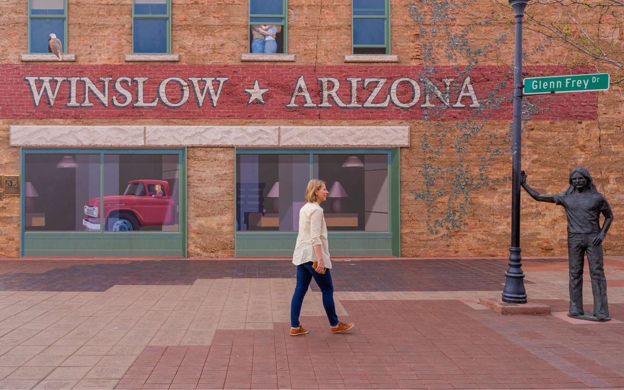 Yes, you can stand on the corner of Winslow, AZ! There’s a permanent Flatbed Ford and statue of Glenn Frey where visitors and locals alike stop to take a picture of the corner made famous in The Eagles debut single “Take it Easy.”