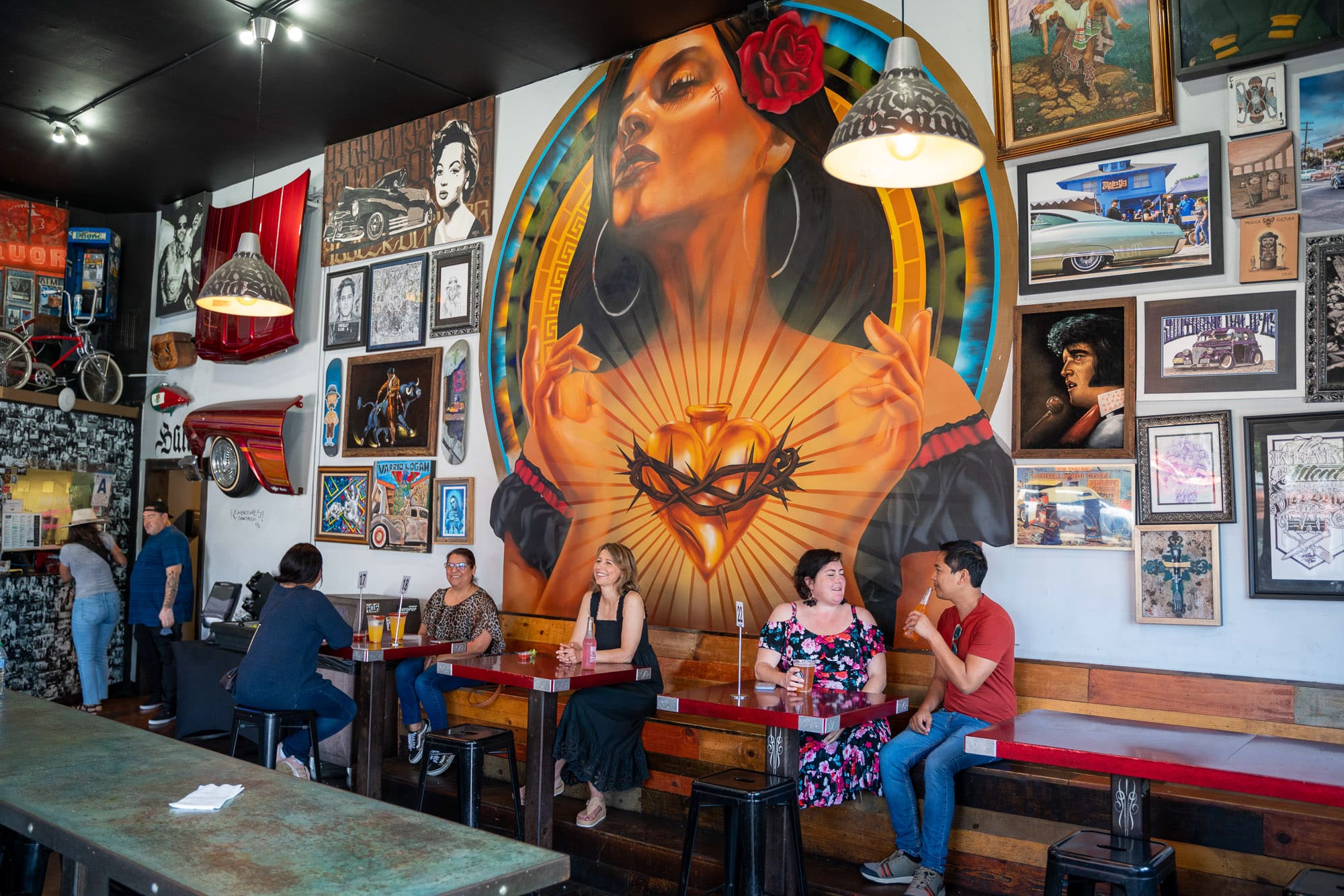 Of course a visit to Barrio Logan wouldn’t be complete without tacos. ¡Salud Tacos! is the kind of place that usually has a line out the door as visitors clamor to sample from the menu, which puts a Chicano twist on Northern Mexican street food. Right near Chicano Park, it also feels like a mini-museum with vibrant art pieces and murals decorating the interior. You can’t go wrong with whichever taco combination you choose but be sure to get an agua fresca of the day and finish off with their churros and ice cream.